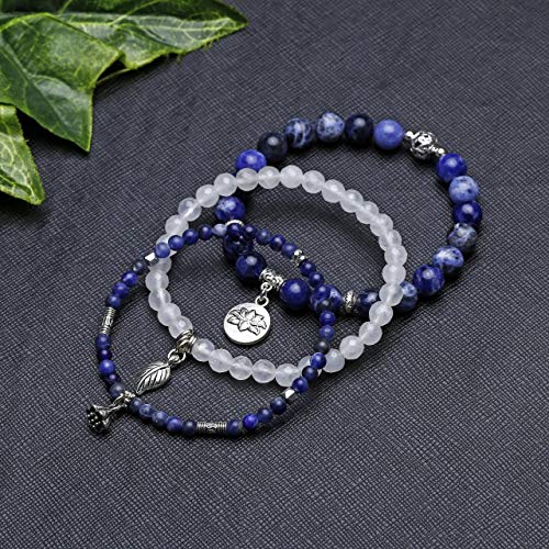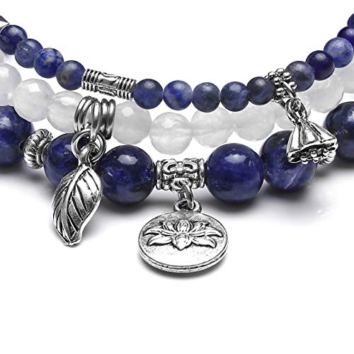Top Plaza - مجموعة اساور خرز حجر كريم مرنة من كريستالي له خواص علاجية توب بلازا مزينة بدلايات على شكل ورق لوتس مناسبة للشاكرات واليوجا وعلاج ريكي مجوهرات رائعة للنساء