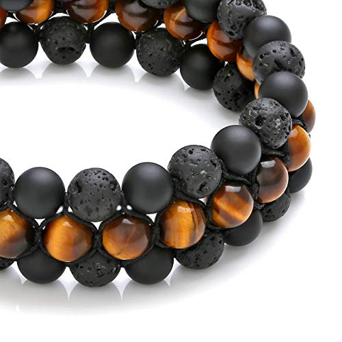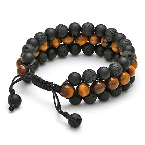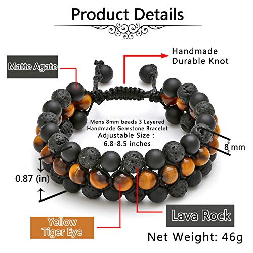 Top Plaza - سوار موزع الزيوت الاساسية للرجال من توب بلازا حجر اللافا خرز الاحجار الكريمة الطبيعية واحجار الشاكرا مُرصع بكريستال علاجي يُعتقد أنها مناسبة لليوجا وعلاج الاضطراب - 3 طبقات كريستال