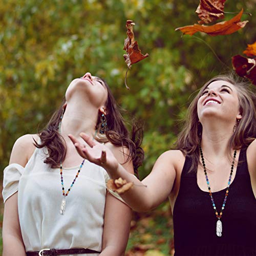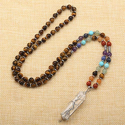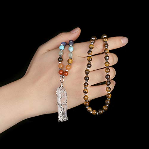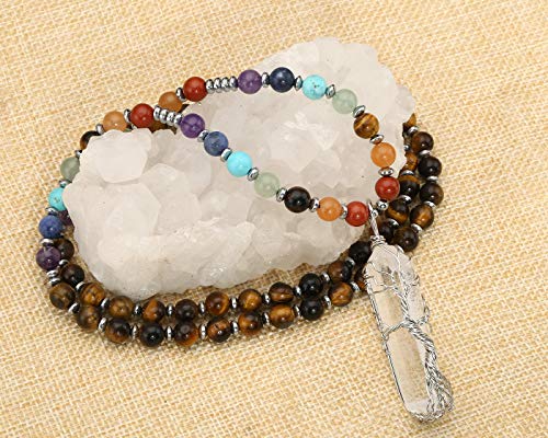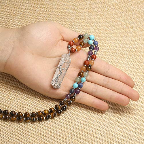 Top Plaza - قلادة من سلوك فضية ملفوفة حول دلاية من حجر الكوارتز الشفاف ومطعمة باحجار طبيعية ذات مفعول شفائي ومناسبة كهدية للنساء من توب بلازا