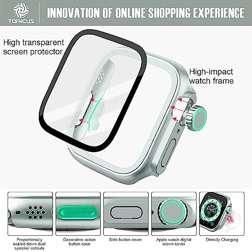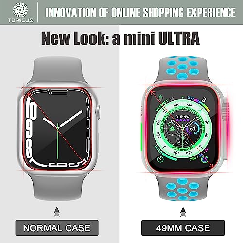 top4cus - جراب حماية الترا لوك من توب 4 كوس اي ووتش متوافقة مع ساعة ابل 49 ملم شاشة الزجاج المقوى صلب معزز تغيير إلى ميني أحمر
