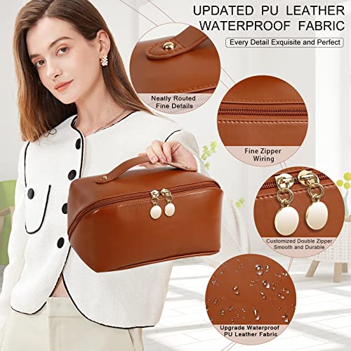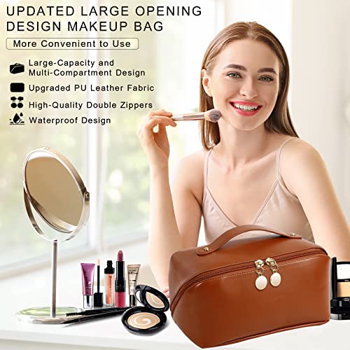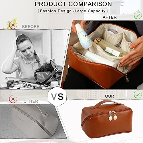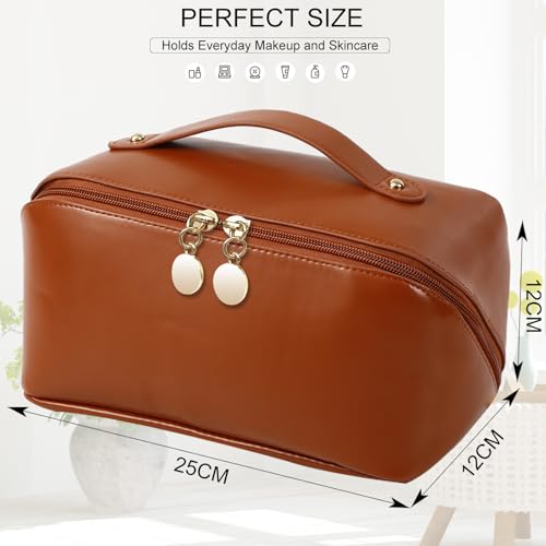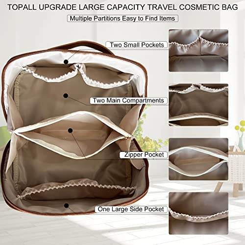 TOPALL - شنطة مستحضرات تجميل للسفر للنساء من توبول، شنطة مستحضرات تجميل كبيرة للسفر، شنطة مكياج للنساء، مصنوعة من جلد البولي يوريثين المحدث، شنطة تنظيم المكياج وأدوات الزينة