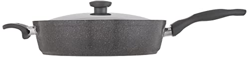 Top Chef - طاسة سوتيه تركي توب شيف مقاس 30 سم بطلاء جرانيت غير لاصق، سمك 4.2 ملم، تتحمل حرارة حتى 550 درجة، بغطاء زجاجي، امنة للطعام وخالية من حمض بيرفلورو الاوكتانويك سهلة التنظيف وضمان 3 سنوات