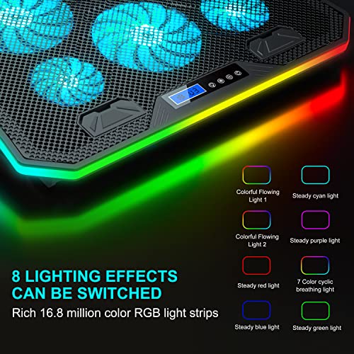TopMate - قاعدة تبريد C12 محمولة ار جي بي للاب توب، حامل ومروحة بتصميم 8 ارتفاعات قابلة للتعديل و6 مراوح هادئة وحامل موبايل من توب ميت، مناسبة للأجهزة مقاس 15.6-17.3 بوصة، ليد أزرق ثلجي