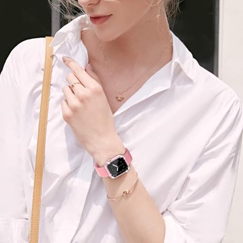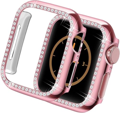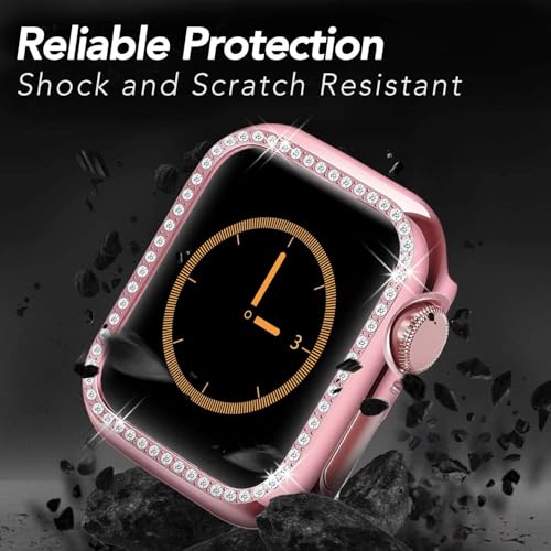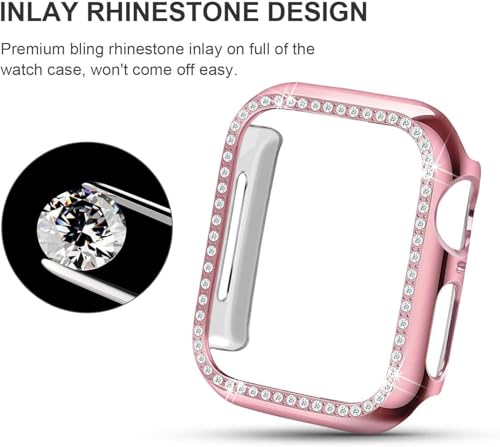 - تصميم فاخر: إطار حماية مزين بكريستال لامع يضيف لمسة أنيقة لساعة أبل مع حماية كاملة للشاشة