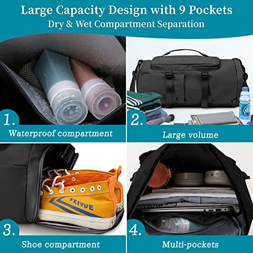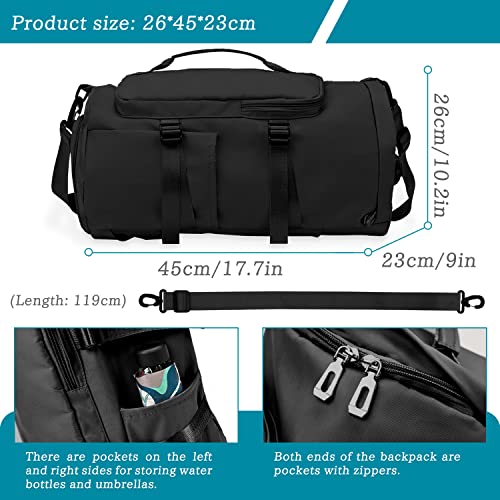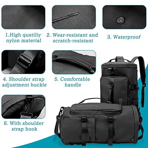 Topretty - شنطة ظهر دفل L رياضية 4 في 1 بجيب للاغراض الرطبة وقسم للاحذية سعة 35 مل ضد الماء ملائمة للجنسين لصالة الالعاب الرياضية والتنقل واليوجا والتنزه والتخييم مزودة بـ9 جيوب, أسود، نايلون، من توبريتي