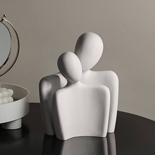 Topsky - تمثال بتصميم زوجين لديكور المنزل، نحت فني تجريدي ورومانسي وعصري لزوجين متآلفين، ديكور لتجسيد عناق شغوف للأزواج من توب سكاي - زوج واحد بلون أبيض