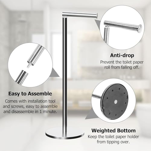 Topsky - توبسكي حامل ورق تواليت قائم بذاته من الستانلس ستيل، حامل ورق تواليت احتياطي مقاوم للصدا لـ4-5 لفافات جامبو قابلة للطي للتخزين للحمام وغرفة المعيشة والمطبخ وغيرها (فضي)