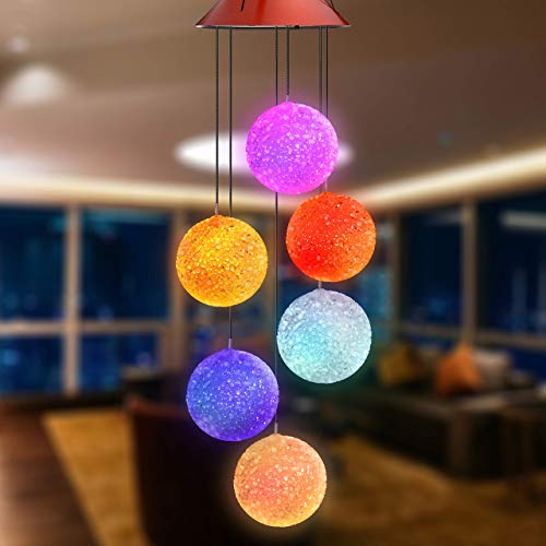Topspeeder - جرس رياح كريستال بالطاقة الشمسية متغير الألوان في الهواء الطلق من توب سبيدر، جرس مقاوم للماء بالطاقة الشمسية لديكور الأماكن الخارجية والفناء