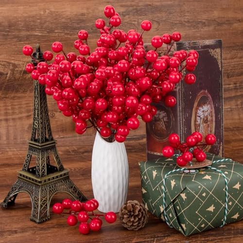 - مجموعة التوت الاصطناعي للكريسماس: تحتوي هذه العبوة على 50 ساق توت أحمر صناعي، كل منها يحتوي على 12 حبة توت أحمر. بطول تقريبي 23 سم، فهي مثالية للاندماج في مجموعة متنوعة من ديكورات الكريسماس.