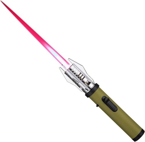 GXfirxen - ولاعة شعلة للرجال، لهب أحمر قابل للتعديل، لهب نفاث مقاوم للرياح، ولاعة غاز البوتان قابلة لإعادة الملء بقفل أمان للشواء والتخييم والمواقد، (غاز البوتان غير متضمن) (لون أخضر)