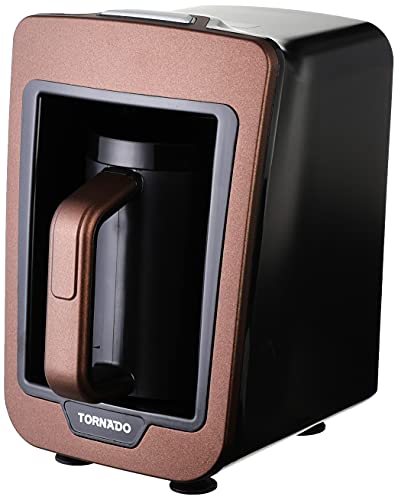 - ماكينة تحضير القهوة التركية الأوتوماتيكية من تورنيدو، قدرة ماكينة تحضير القهوة: 735 وات، السعة القصوى: 4 أكواب / 330 مل - اللون: بني × أسود.