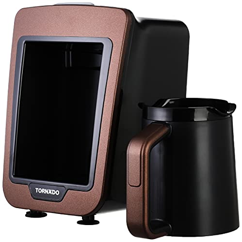 Tornado - ماكينة تحضير القهوة التركية الأوتوماتيكية طراز TCME-100، تقنية لومينا سنس بقدرة 735 وات، إنذار ضوئي وصوتي، صناعة تركيا من تورنيدو، سعة 330 مل، سعة 4 أكواب، بني × اسود