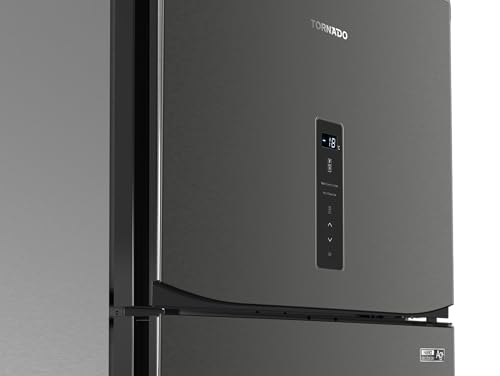 Tornado - ثلاجة رقمية من الستانلس ستيل بخاصية إذابة الثلج (نو فروست) وسعة 450 لتر تورنيدو - موديل RF-580AT-ST، رمادي