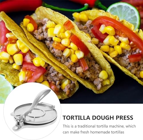 Mikily‘s - مكبس خبز روتي مسطح من الألومنيوم لصنع خبز التورتيلا والكيساديلا والبيتزا والعجين والامبانادا والبيتزا بالضغط واكثر من ذلك، فضي 15 سم