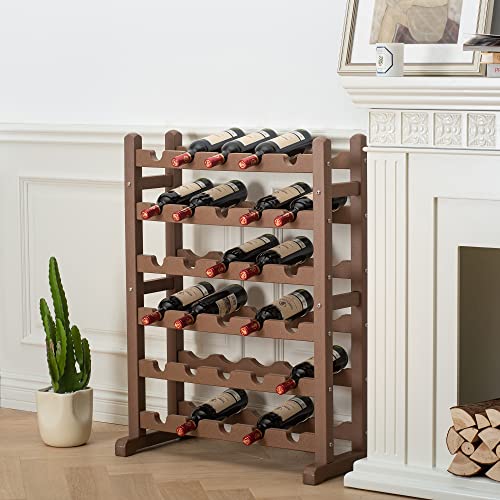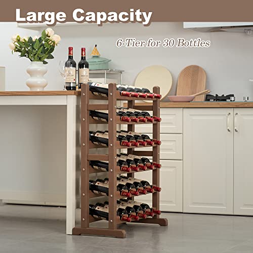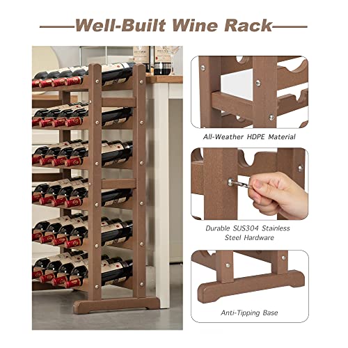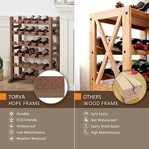 TORVA - تورفا رفوف مشروبات قائمة بذاتها من 6 طبقات من البولي ايثيلين عالي الكثافة، منظم تخزين لعرض 30 زجاجة، حامل زجاجات النبيذ للمطبخ والمطبخ والقبو والبار (خشب)