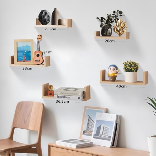 - أضف طابعًا شخصيًا على الحائط الخاص بك: مصمم بفتحات تثبيت مدمجة، يمكن وضع كل رف حائط لأعلى أو أسفل. تقدم الرفوف الخشب الجدارية الخمسة بأحجام مختلفة خيارات تصميم لا حصر لها، مما يتيح لك ابتكار ديكور جداري مخصص يضفي الحياة على الجدران الفارغة بأناقة وشخصية.