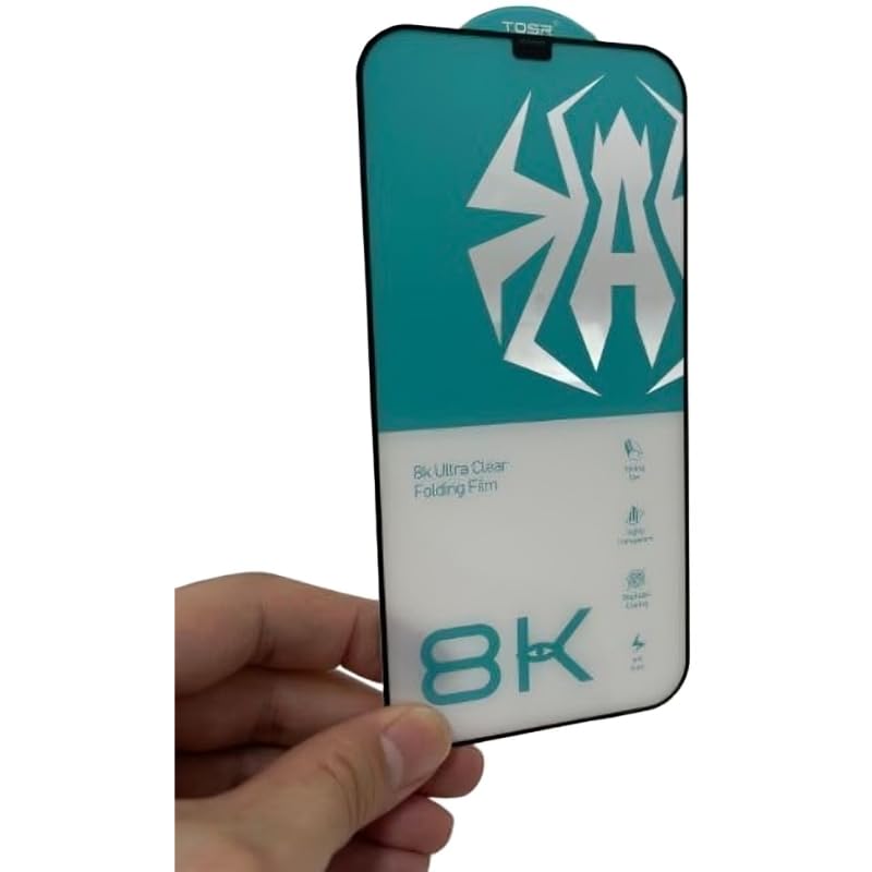 TOSR - شاشة حماية قابلة للطي فائقة الوضوح 8K بدرجة صلابة 9 من تورس،- مضادة للصدمات والكسر لموبايل آيفون اكس اس ماكس / 11 برو ماكس - لون اسود شفاف
