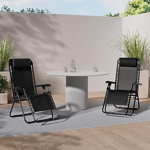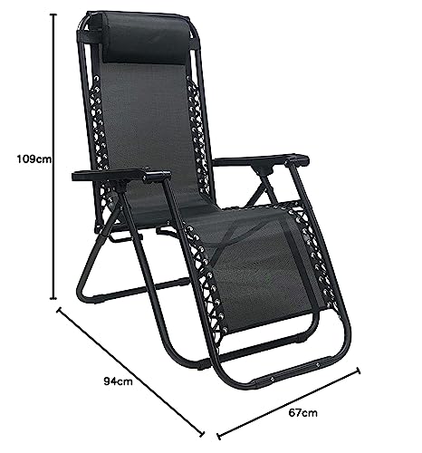 Totò Piccinni - كرسي استرخاء زيرو جرافيتي للحديقة بتصميم قابل للطي وموفر للمساحة بإطار صلب أنبوبي 24 ملم، ونسيج تيكستيلين بنمط قابل للإمالة، أثاث خارجي للبحر والشاطئ وحمام السباحة من توتو بيتشيني (أسود)