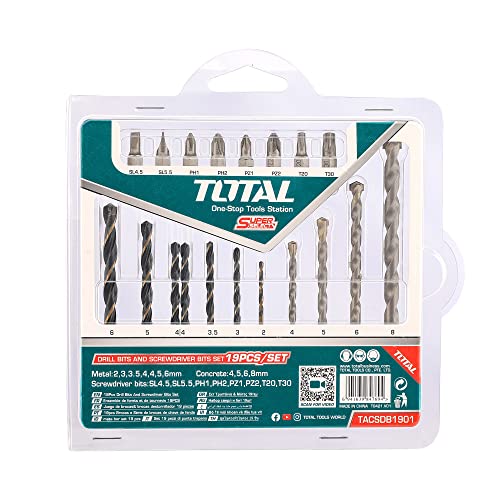 TOTAL - مجموعة ادوات الحدادة والتثبيت علي الحائط، 19 قطعة