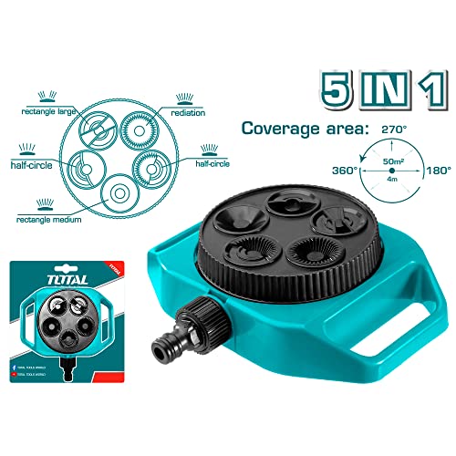 TOTAL - رشّاش حدائق بلاستيكي، رشّاش مياه للحديقة والعشب، برشّاش دائري بخمس وظائف على شكل برج لري النباتات والزهور، نظام ري للعشب THPS63022 من توتال