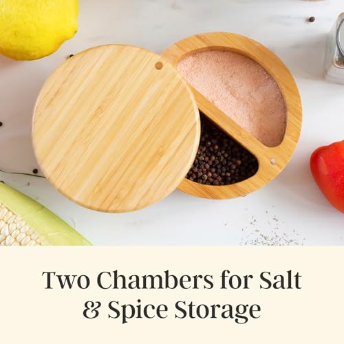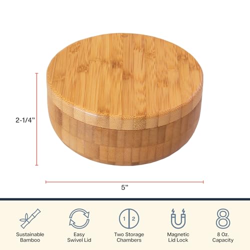 Totally Bamboo - ملاحة للملح دويت، حاوية بامبو بغطاء مغناطيسي للتخزين الآمن، وقسمين للملح والتوابل، قطعة واحدة من توتالي بامبو