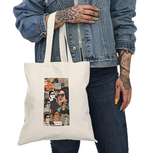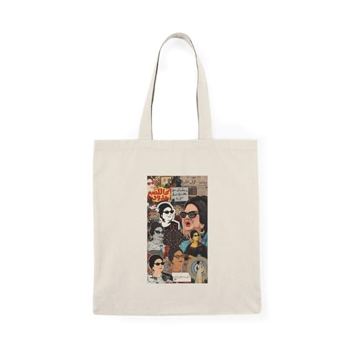 Generic - Tote Bag – شنطة قماش بسحاب سيدة الغناء العربي- كولاج لأم كلثوم مع طوابع وبرقيات قديمة – شنطة واسعة وخفيفة للتسوق اليومية – عملية صديقة للبيئة وقابلة لإعادة الاستخدام