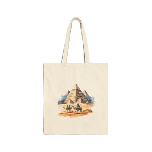 Generic - Tote Bag - حقيبة قماشية بسوسته بتصميم فني للأهرامات مع قافلة جمال في الصحراء - شنطة كتف قطنية لهدايا تذكارية مصرية كلاسيكية، أبيض كريمي متين وعصري.