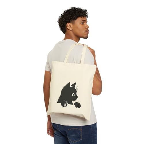 Generic - شنطة يد كبيرة توت من القماش بسوستة لمحبي القطط - لون بيج - 742