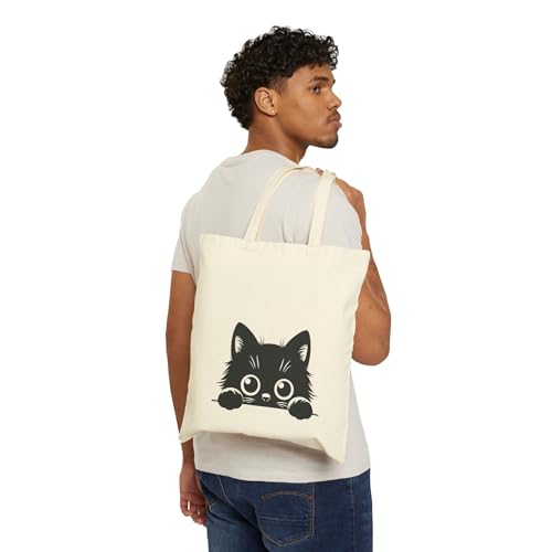 Generic - شنطة يد كبيرة توت من القماش بسوستة لمحبي القطط - لون بيج - 743