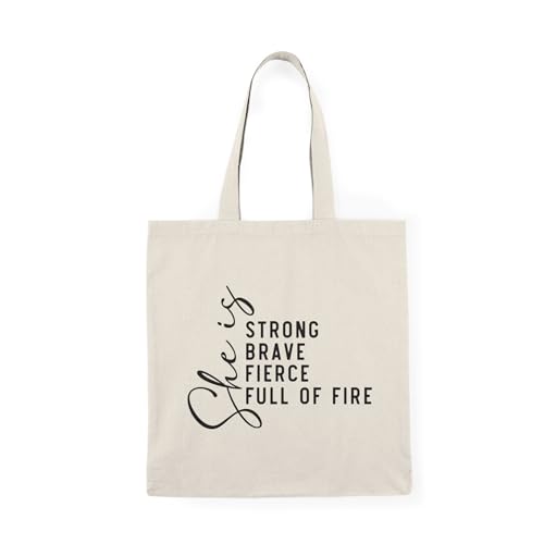 Generic - توتي باج - شنطة قماش بيج بسحاب She Is Strong Brave Fierce Full Of Fire Tote Bag With Zipper-566