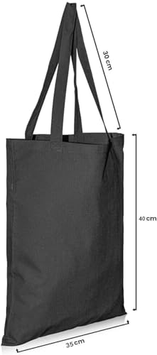 Generic - شنطة يد كبيرة توت من القماش القطني بلون اسود مقاس 02/40 × 35 سم