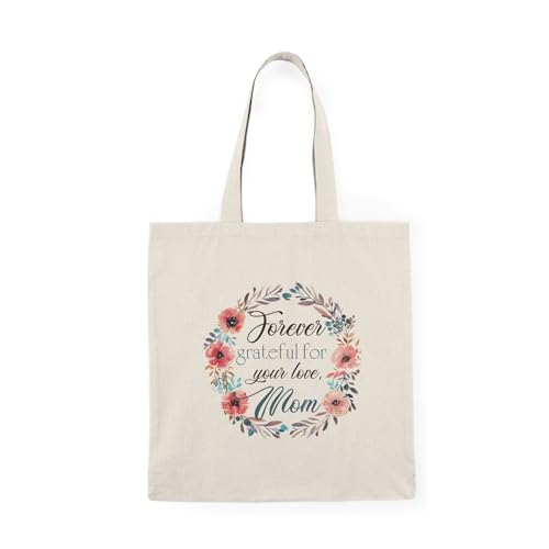 Generic - Tote Bag – شنطة قماش بسحاب - تصميم "ممتن دائماً لحبك يا أمي" - تصميم إكليل زهور دافئ - شنطة كتف قطنية هدية عصرية ومميزة للأم لهديا عيد الام