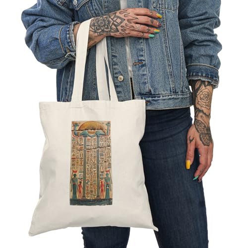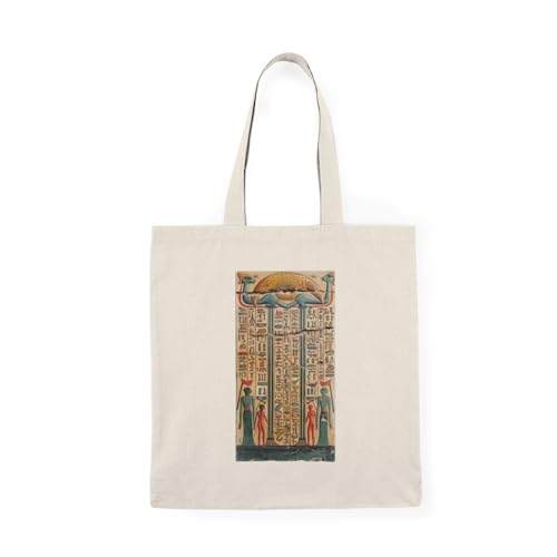 Generic - Tote Bag - شنطة قماش بسوستة – بتصميم بردية فرعونية قديمة – نقوش مصرية قديمة وألوان مميزة – شنطة خروج وتسوق مطبوعة – خفيفة ومتينة وصديقة للبيئة مناسبة للهدايا والجامعة