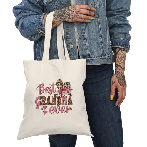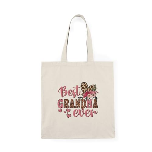 Generic - Tote Bag – شنطة قماش بسحاب - تصميم "أفضل جدة على الإطلاق" - تصميم مودرن بنقشة جلد الفهد - شنطة كتف قطنية هدية فخمة للجدة في عيد ميلادها