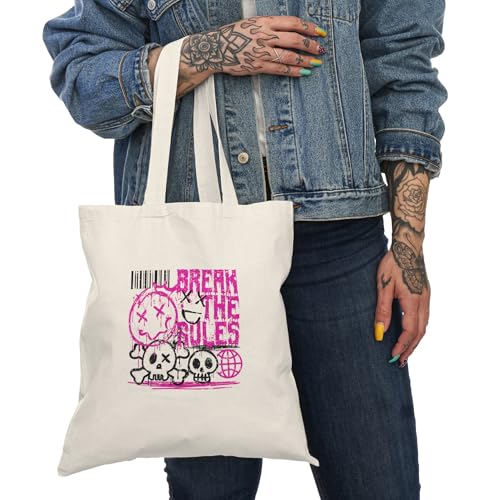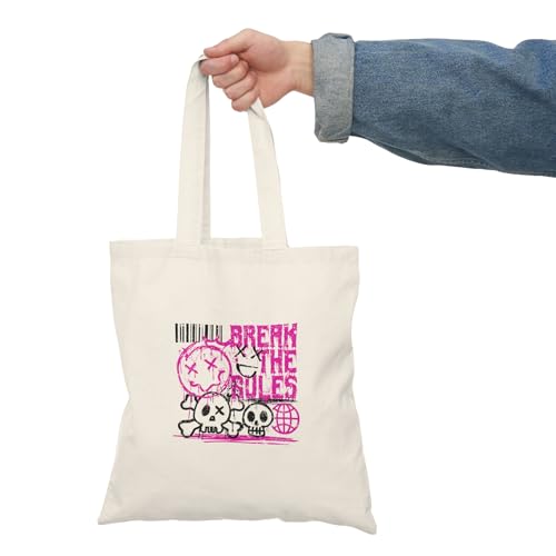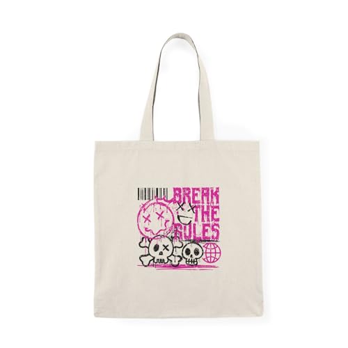 Generic - Tote Bag - شنطة قماش بسوستة – بتصميم اكسر القواعد – ستايل جريء بلمسة بانك عصرية – شنطة خروج وتسوق مطبوعة – خفيفة ومتينة وصديقة للبيئة مناسبة للهدايا والجامعة