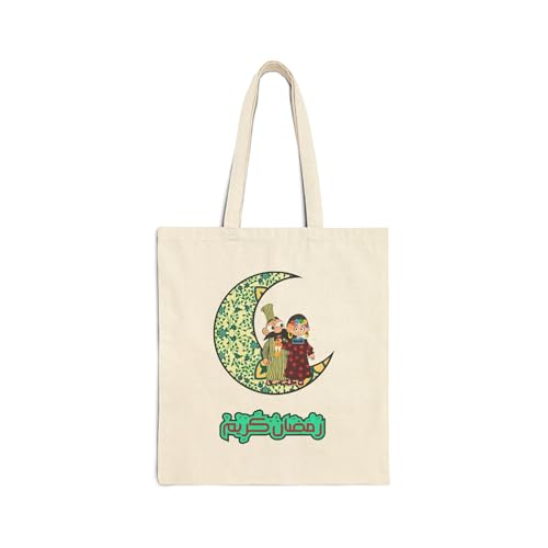 Generic - Tote Bag - حقيبة قماشية بسوسته بتصميم كرتوني لشخصيات رمضانيه وفطوطة بلمسة الفن الشعبي - شنطة كتف قطنية لهدايا رمضان، أبيض كريمي متين وعصري.