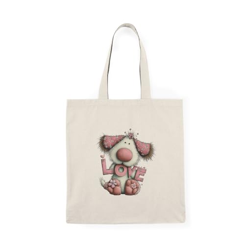 Generic - Tote Bag – شنطة قماش بسحاب - تصميم كرتوني للأرنب الوردي مع كلمة حب لهدايا عيد الحب – حقيبة واسعة وخفيفة للتسوق اليومية – حقيبة عملية صديقة للبيئة وقابلة لإعادة الاستخدام