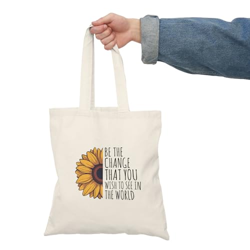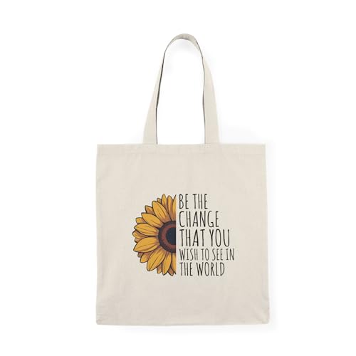 Generic - Tote Bag - شنطة قماش بسوستة – بتصميم “غيّر العالم بابتسامتك – شنطة زهرة دوّار الشمس الملهمة” – شنطة خروج وتسوق مطبوعة – خفيفة ومتينة وصديقة للبيئة مناسبة للهدايا والجامعة