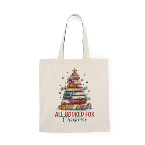 Generic - Tote Bag - شنطة قماش بسوستة – بتصميم شجرة كتب للكريسماس – تصميم كريسماس لطيف للهدايا والمناسبات – شنطة خروج وتسوق مطبوعة – خفيفة ومتينة وصديقة للبيئة مناسبة للهدايا والجامعة