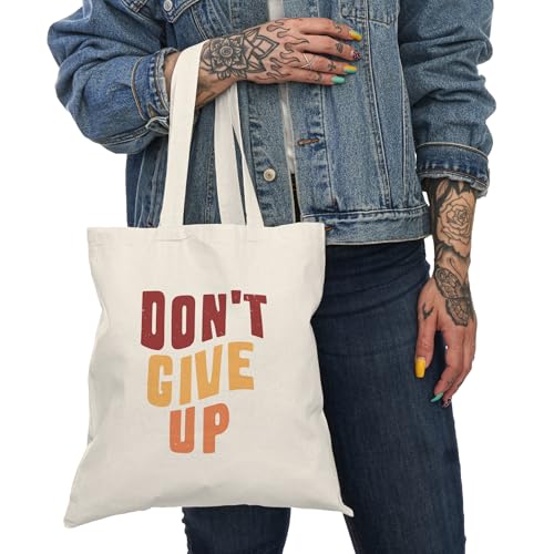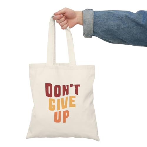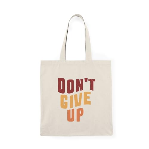 Generic - Tote Bag – شنطة قماش بسحاب - تصميم "Don't Give Up" - تصميم تحفيزي بألوان ريترو دافئة وخطوط متموجة - شنطة كتف قماشية للجامعة والجيم بتصميم ملهم – حقيبة واسعة
