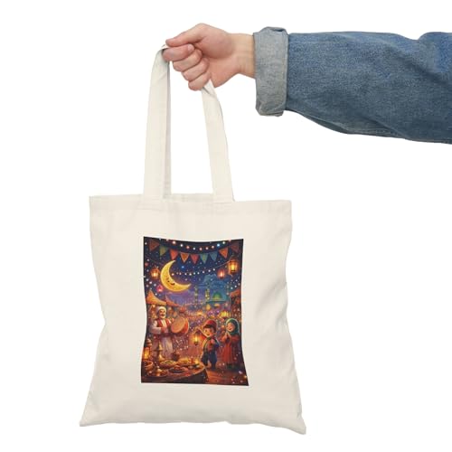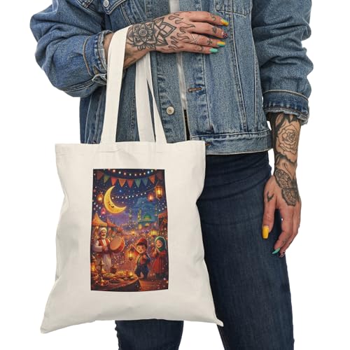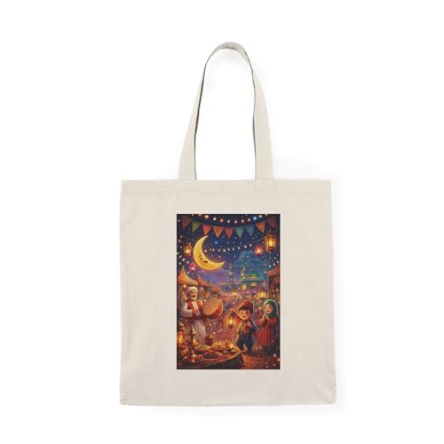 Generic - Tote Bag – شنطة قماش بسحاب - تصميم "ليالي العيد والمسحراتي" - تصميم احتفالي للأطفال والعائلة - شنطة كتف مبهجة لهدايا شهر رمضان المبارك