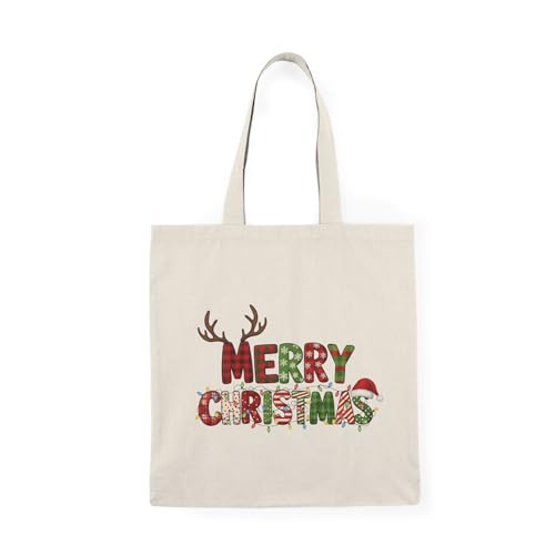 Generic - Tote Bag - شنطة قماش بسوستة – بتصميم Merry Christmas الاحتفالي – تصميم كريسماس لطيف للهدايا والمناسبات – شنطة خروج وتسوق مطبوعة – خفيفة ومتينة وصديقة للبيئة مناسبة للهدايا والجامعة