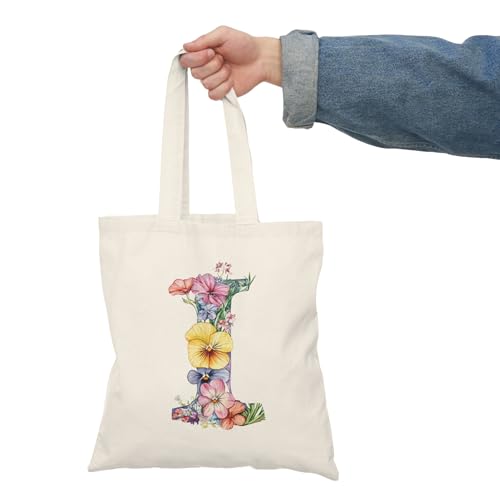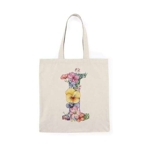 Generic - Tote Bag - شنطة قماش بسوستة – تصميم حرف I مزين بالورود والأزهار – شنطة خروج وتسوق مطبوعة – خفيفة ومتينة وصديقة للبيئة مناسبة للهدايا والجامعة