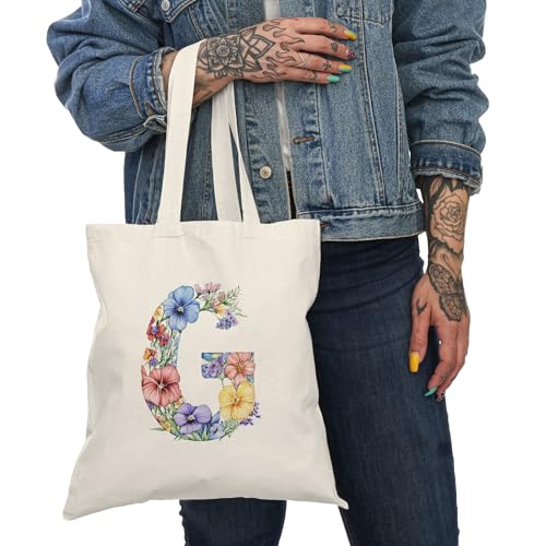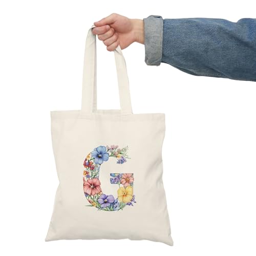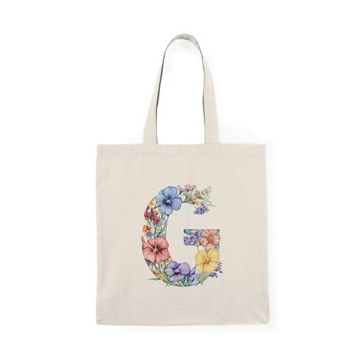 Generic - Tote Bag - شنطة قماش بسوستة – تصميم حرف G مزين بالورود والأزهار – شنطة خروج وتسوق مطبوعة – خفيفة ومتينة وصديقة للبيئة مناسبة للهدايا والجامعة