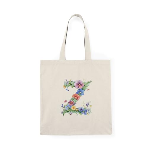 Generic - Tote Bag - شنطة قماش بسوستة – تصميم حرف Z مزين بالورود والأزهار – شنطة خروج وتسوق مطبوعة – خفيفة ومتينة وصديقة للبيئة مناسبة للهدايا والجامعة