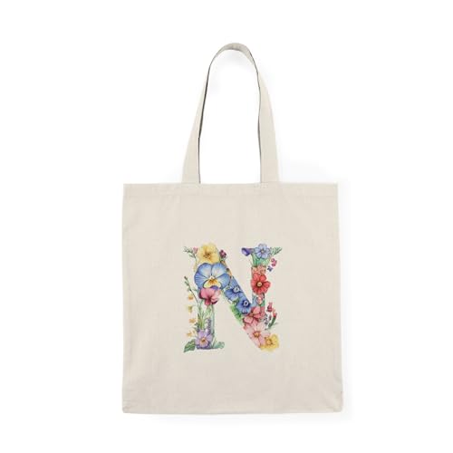 Generic - Tote Bag - شنطة قماش بسوستة – تصميم حرف N مزين بالورود والأزهار – شنطة خروج وتسوق مطبوعة – خفيفة ومتينة وصديقة للبيئة مناسبة للهدايا والجامعة