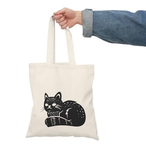 Generic - شنطة يد كبيرة توت من القماش بسوستة بتصميم قطة سوداء لطيفة للهالوين، 242