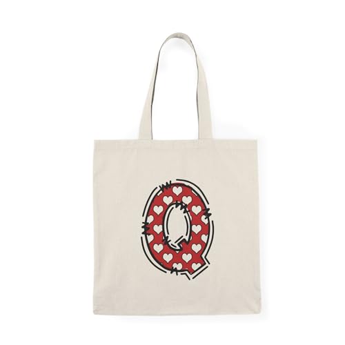 Generic - Tote Bag – شنطة قماش بسحاب - تصميم حرف Q المزين بالقلوب - تصميم مخصص للهدايا الشخصية والأسماء لهدايا عيد الحب – حقيبة واسعة وخفيفة للتسوق اليومية – حقيبة عملية صديقة للبيئة وقابلة لإعادة الاستخدام