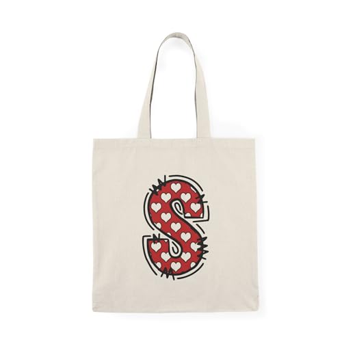Generic - Tote Bag – شنطة قماش بسحاب - تصميم حرف S المزين بالقلوب - تصميم مخصص للهدايا الشخصية والأسماء لهدايا عيد الحب – حقيبة واسعة وخفيفة للتسوق اليومية – حقيبة عملية صديقة للبيئة وقابلة لإعادة الاستخدام