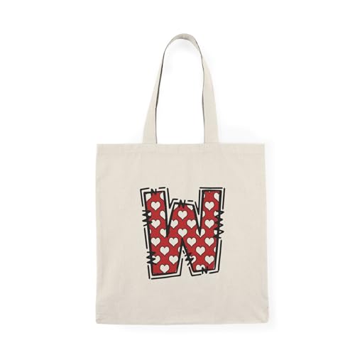 Generic - Tote Bag – شنطة قماش بسحاب - تصميم حرف W المزين بالقلوب - تصميم مخصص للهدايا الشخصية والأسماء لهدايا عيد الحب – حقيبة واسعة وخفيفة للتسوق اليومية – حقيبة عملية صديقة للبيئة وقابلة لإعادة الاستخدام